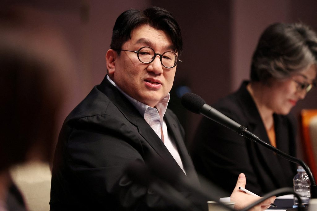 Bang é o fundador da Hybe, a potência musical por trás do grupo global de K-pop BTS. Após a notícia, as ações da Hybe recuaram e fecharam em queda de 2,4%, enquanto o índice de referência da bolsa sul-coreana (KOSPI) subiu 2,7%.